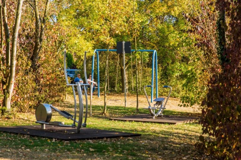 Der Bewegungsparcours umfasst eine rund 250 m² große Trainingsfläche direkt am Sulzachpark, und liegt eingebettet in eine ruhige, grüne Umgebung mit schattenspendenden Bäumen. Die Outdoor-Sportanlage verbindet Fitness, Naturerlebnis und unkomplizierte Zugänglichkeit – ideal für individuelle Aktivierung, Kräftigung und Beweglichkeitsschulung.