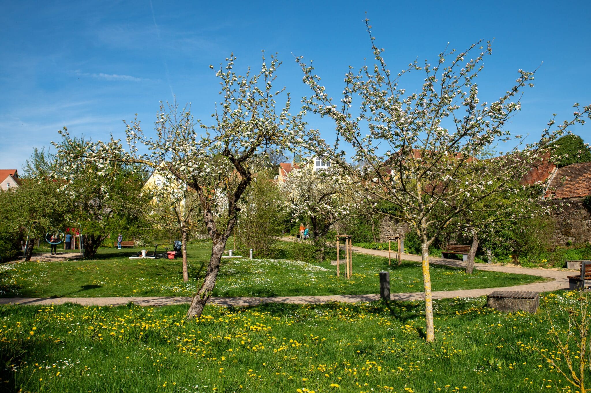 Der Spielplatz an der Ringstraße / Peuntweg liegt idyllisch in unmittelbarer Nähe zum Sulzachpark und am Rand der Feuchtwanger Altstadt mit exklusivem Blick auf die historische Stadtmauer.