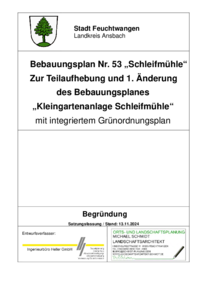 Bebauungsplan Nr. 53 „Schleifmühle“ mit paralleler 23. Änderung des Flächennutzungsplanes