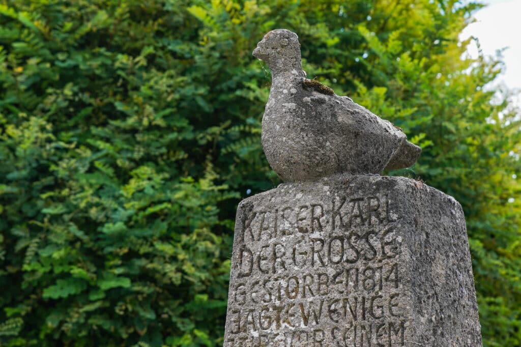 Die Gründungssage von Feuchtwangen gehört zu den zentralen Erzählungen der Stadtgeschichte. Der Überlieferung nach jagte Kaiser Karl der Große in der Gegend des heutigen Feuchtwangen. Dabei verlor er die Orientierung und wurde von starkem Durst geplagt. Auf der Suche nach Wasser soll er einer Taube gefolgt sein, die ihn zu einer Quelle führte. Nachdem er dort Erfrischung gefunden hatte, ließ er aus Dankbarkeit gegenüber Gott in der Nähe der Quelle eine Kirche und ein Kloster errichten – der Ursprung der späteren Stadt Feuchtwangen. Noch heute erinnert in der Feuchtwanger Altstadt das sogenannte „Taubenbrünnlein“ an diese Legende.