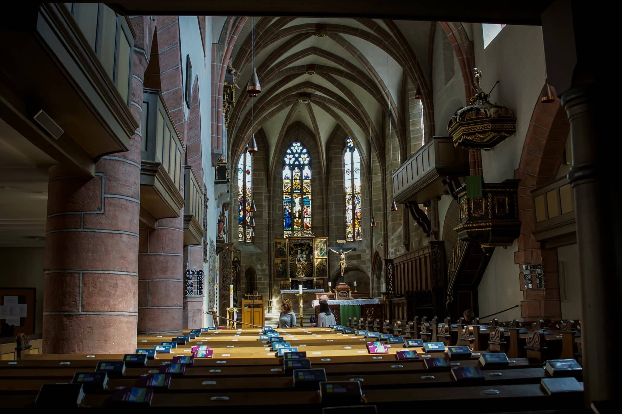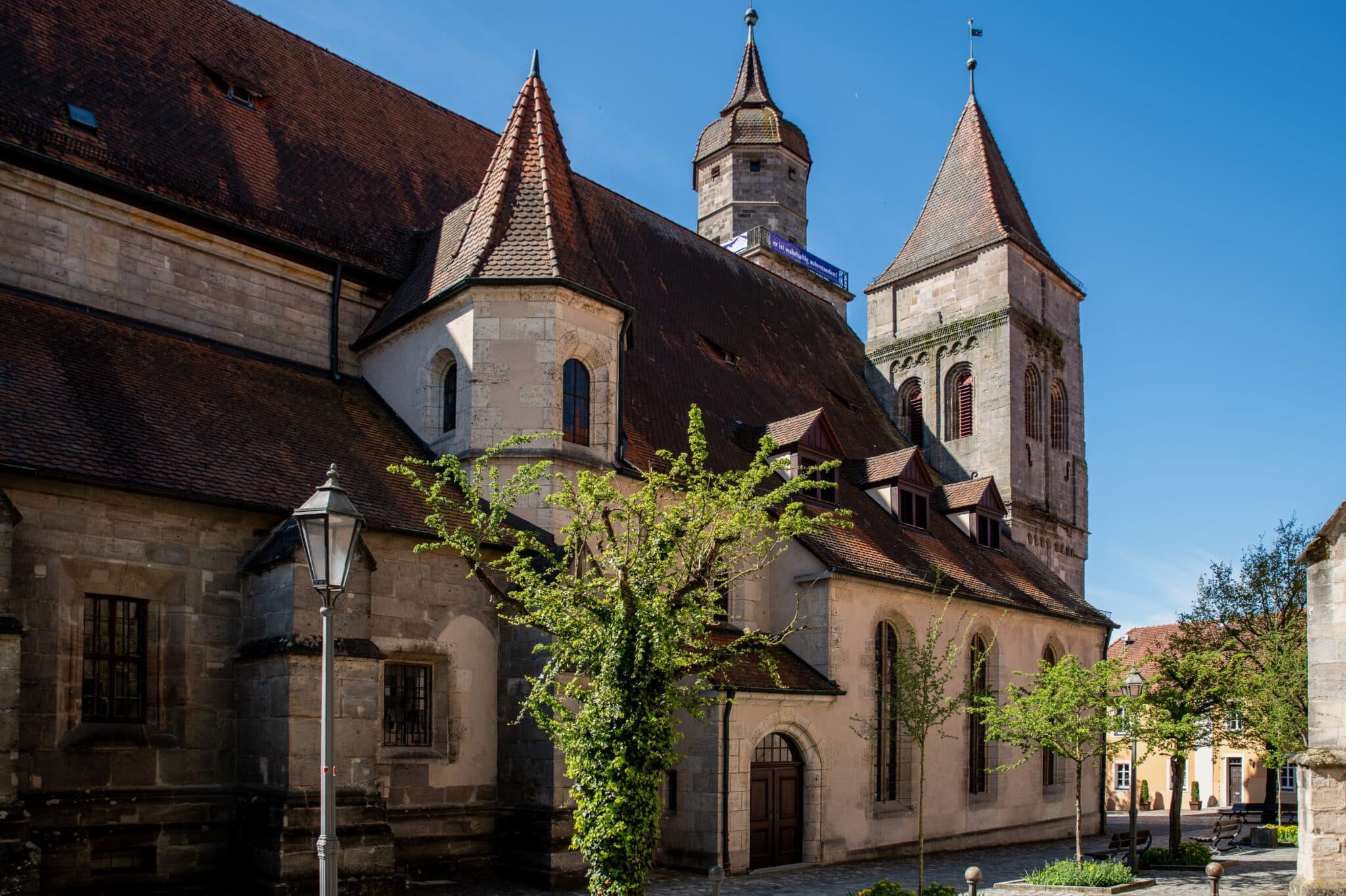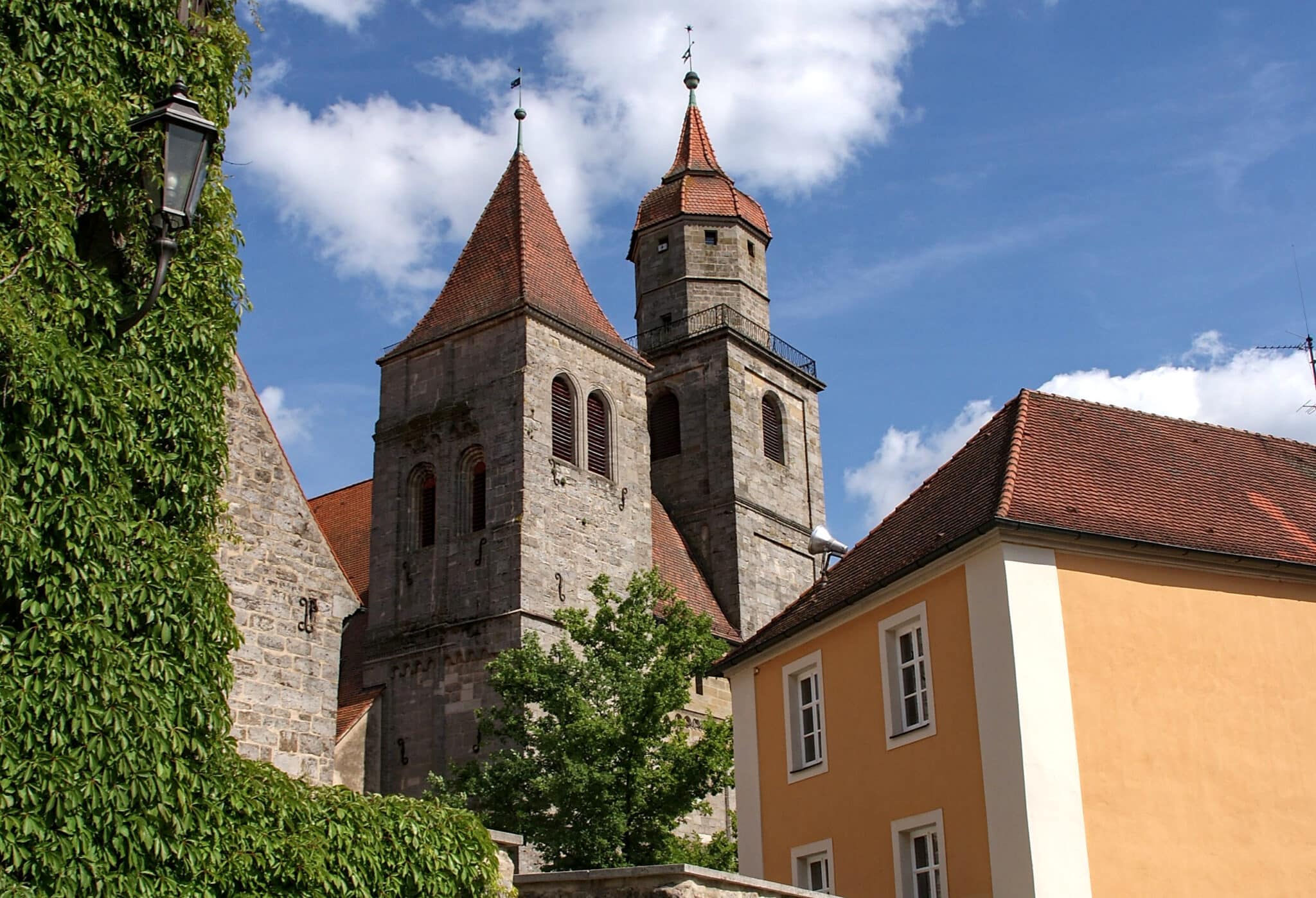 Die Stiftskirche ist das geistige und architektonische Herz Feuchtwangens. Sie gilt als Ursprung der städtischen Entwicklung und prägt bis heute das historische Stadtbild. Errichtet zwischen dem 11. und 16. Jahrhundert spiegelt der Bau die kulturelle und wirtschaftliche Bedeutung Feuchtwangens im Mittelalter wider und dokumentiert den Übergang von der Romanik zur Gotik. Das romanische Westwerk mit seinem ungleichen Turmpaar und dem reich gestalteten Portal steht für die frühe Baukunst der Benediktinerzeit. Dazu zeigt der gotische Chor mit seiner klaren Raumstruktur und Lichtführung die Weiterentwicklung der mittelalterlichen Architektur.